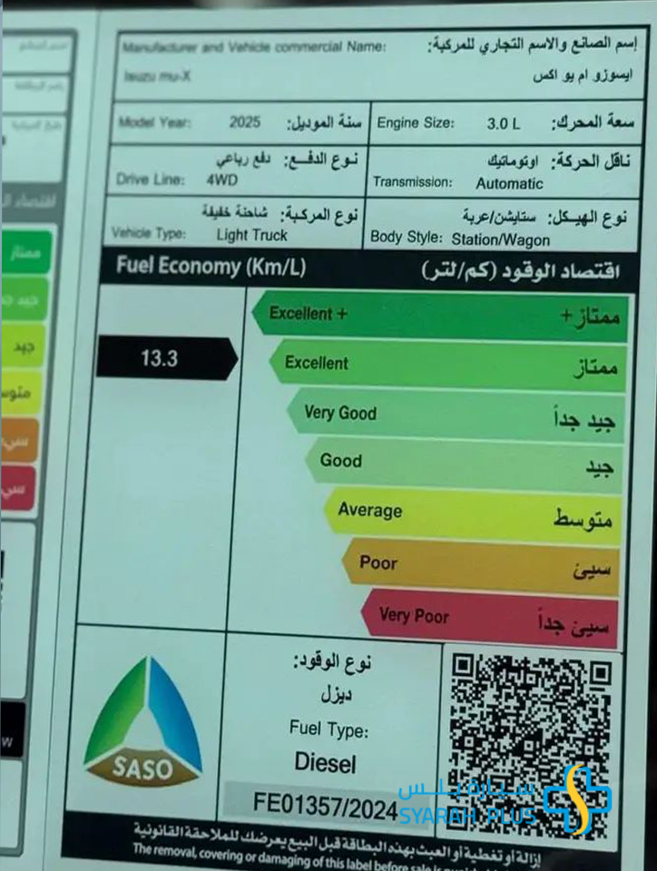 ايسوزو MU-X فل اوبشن 2025 الجديدة كليا . امتلكها الان و تمتع بقيادة فريدة . الالوان المتوفرة حسب المخزون . الاسعار تختلف حسب الالوان المتوفرة . تمويل عروض تقسيط سيارات عائلية . سيارة بلس-Syarah plus