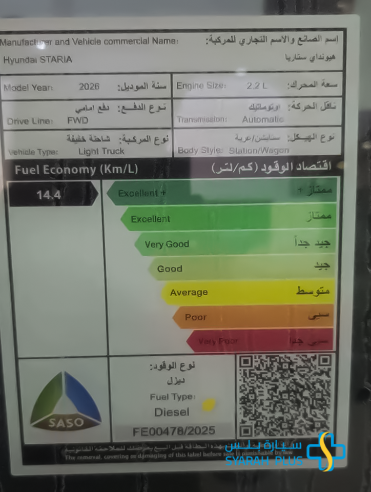 هيونداي ستاريا واجن 2026 الجديده كليا . امتلكها الان و تمتع بقياده فريده . الالوان المتوفره حسب المخزون . الاسعار تختلف حسب الالوان المتوفره . تمويل عروض تقسيط سيارات عائليه . سياره بلس-Syarah plus