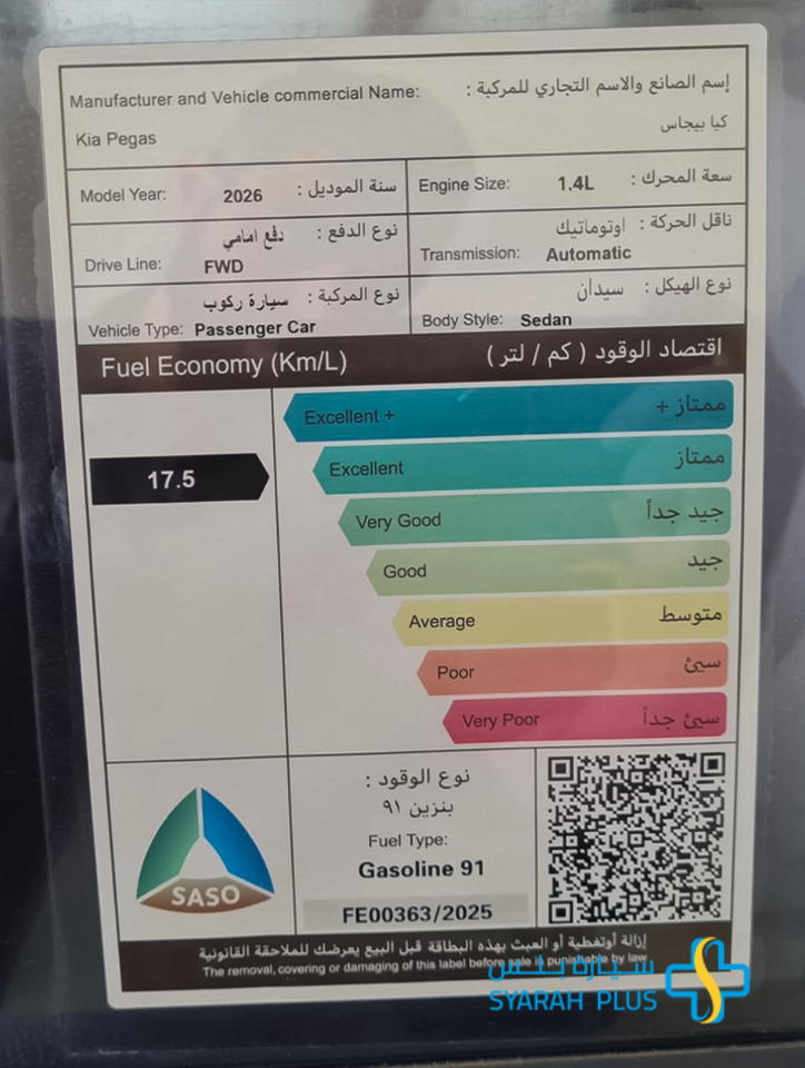 The all-new 2026 Kia Pegas GLS. Get it now and enjoy a unique driving experience. Available colors depend on stock. Prices vary according to available colors. Financing and installment offers for family cars. Syarah Plus car.