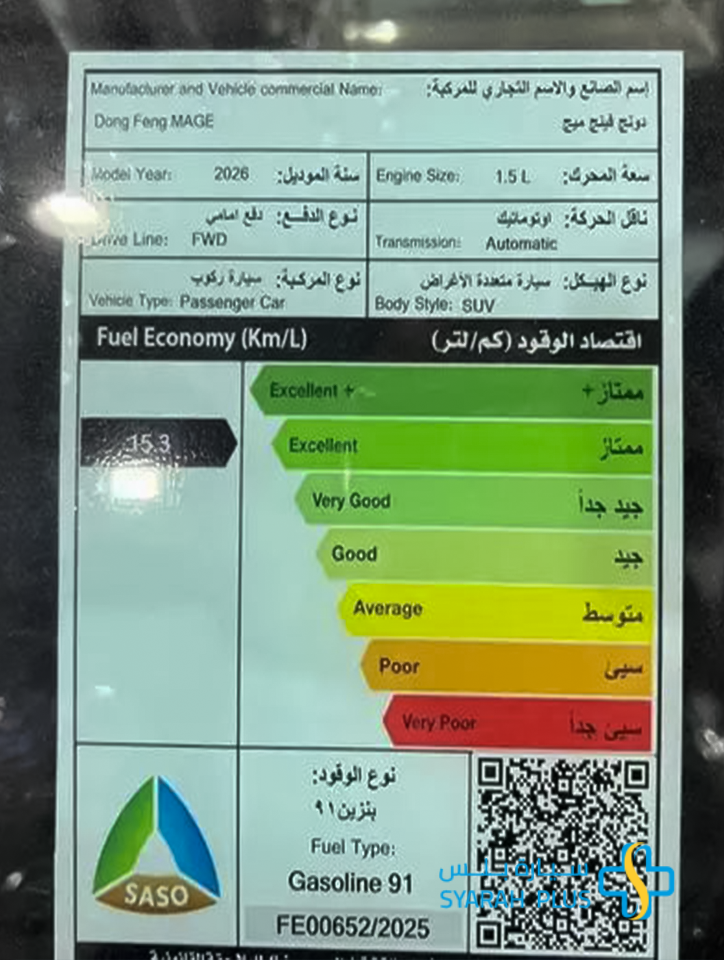دونغ فينغ ميج إي3 2026 الجديدة كلياً . امتلكها الان و تمتع بقيادة فريدة و ممتعة.الالوان المتوفرة حسب المخزون . الاسعار تختلف حسب الالوان المتوفرة . . تمويل عروض تقسيط سيارات عائلية . سيارة بلس-Syarah plus