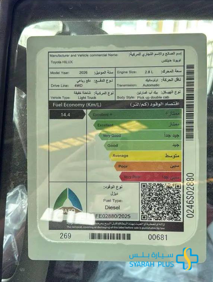 تويوتا هايلكس SGLX غامرتين - دفع رباعي - جير اوتوماتيك - ديزل 2026 الجديدة كليا . امتلكها الان و تمتع بقيادة فريد . الالوان المتوفرة حسب المخزون . الاسعار تختلف حسب الالوان المتوفرة . تمويل عروض تقسيط . سيارات عائلية . سيارة بلس-Syarah plus