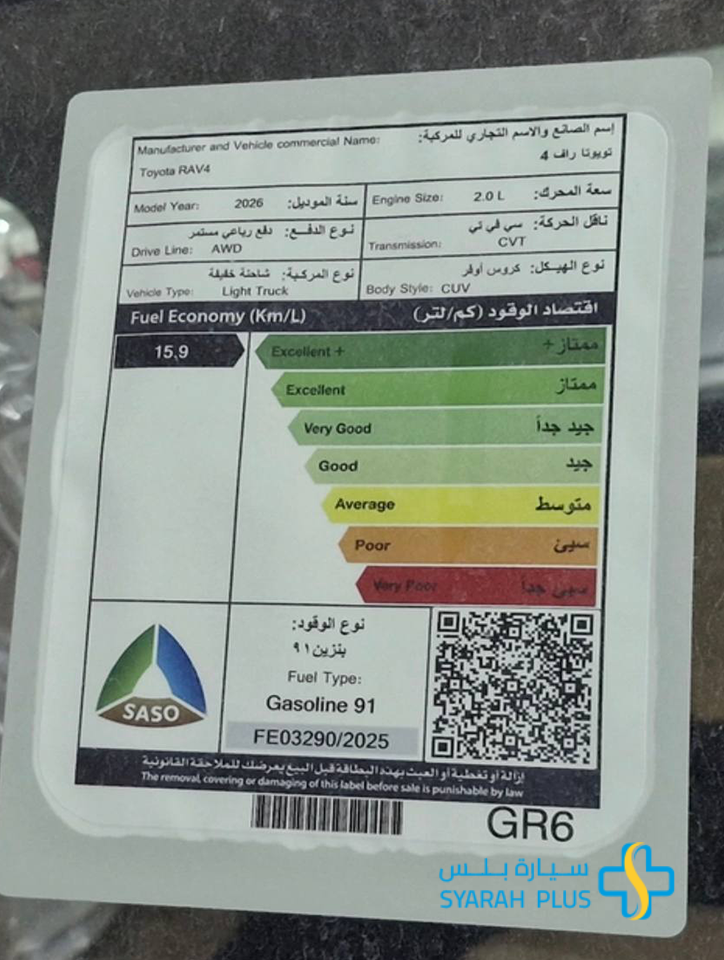 تويوتا راف فور LE 4×4 بنزين 2026 الجديدة كليا . امتلكها الان و تمتع بقيادة فريدة . الالوان المتوفرة حسب المخزون . الاسعار تختلف حسب الالوان المتوفرة . تمويل عروض تقسيط سيارات عائلية . سيارة بلس-Syarah plus