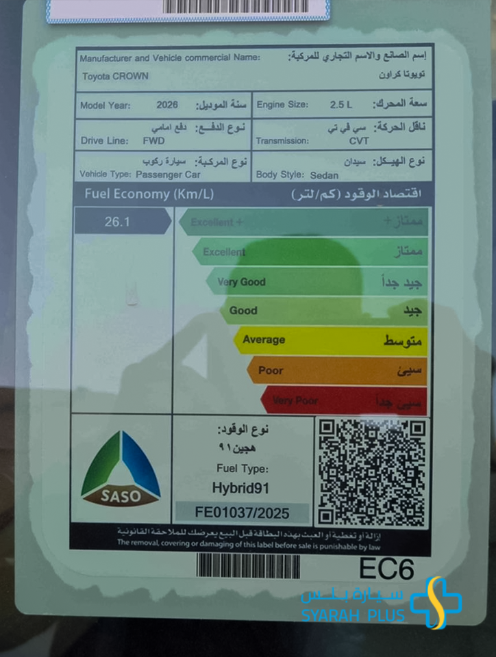 تويوتا كراون بريميوم 2026 الجديدة كليا . امتلكها الان و تمتع بقيادة فريدة . الالوان المتوفرة حسب المخزون . الاسعار تختلف حسب الالوان المتوفرة . تمويل عروض تقسيط سيارات عائلية . سيارة بلس-Syarah plus